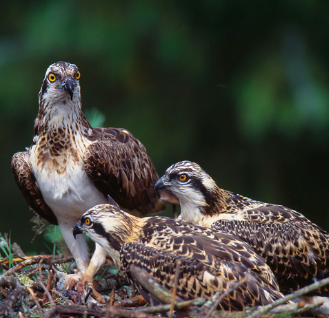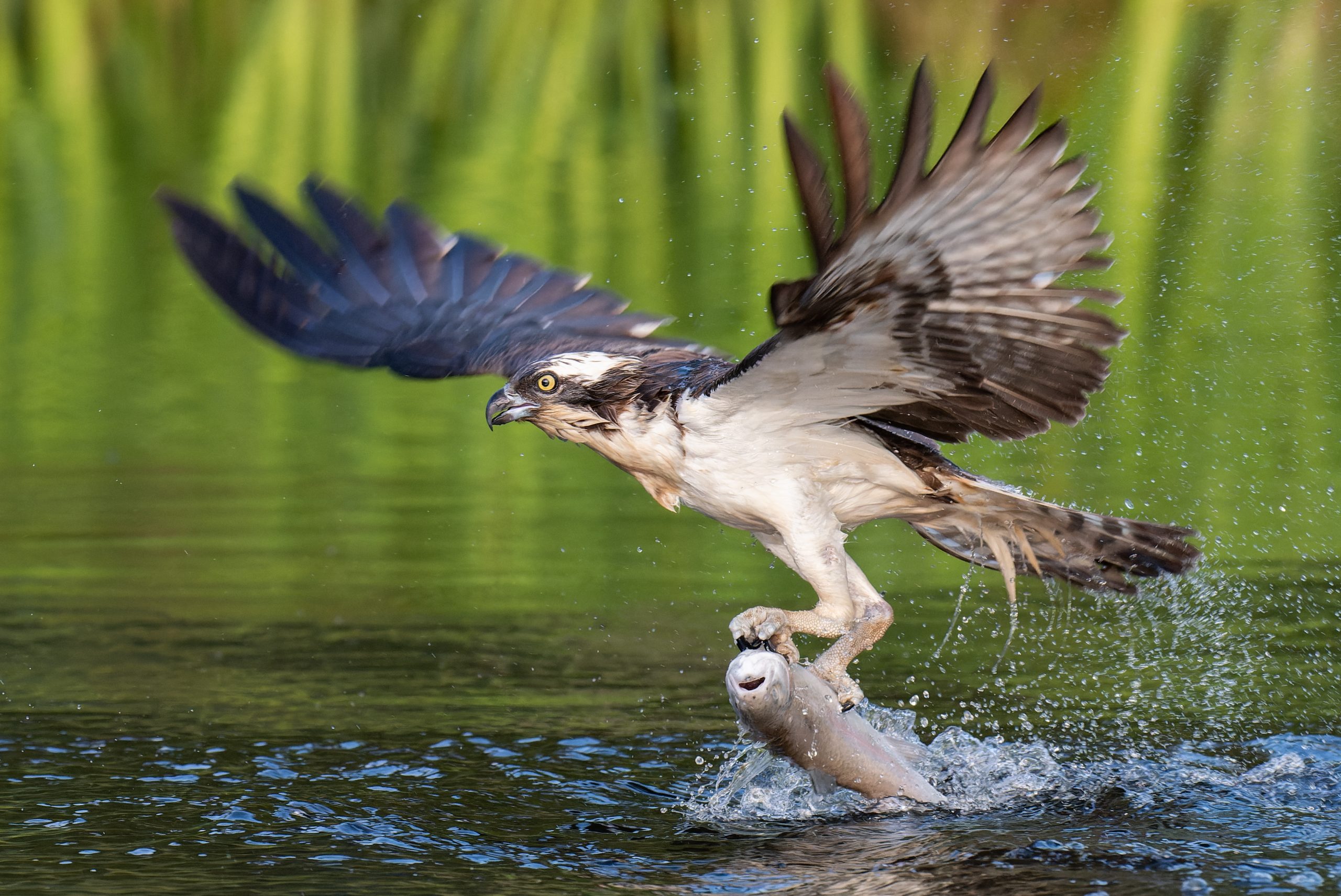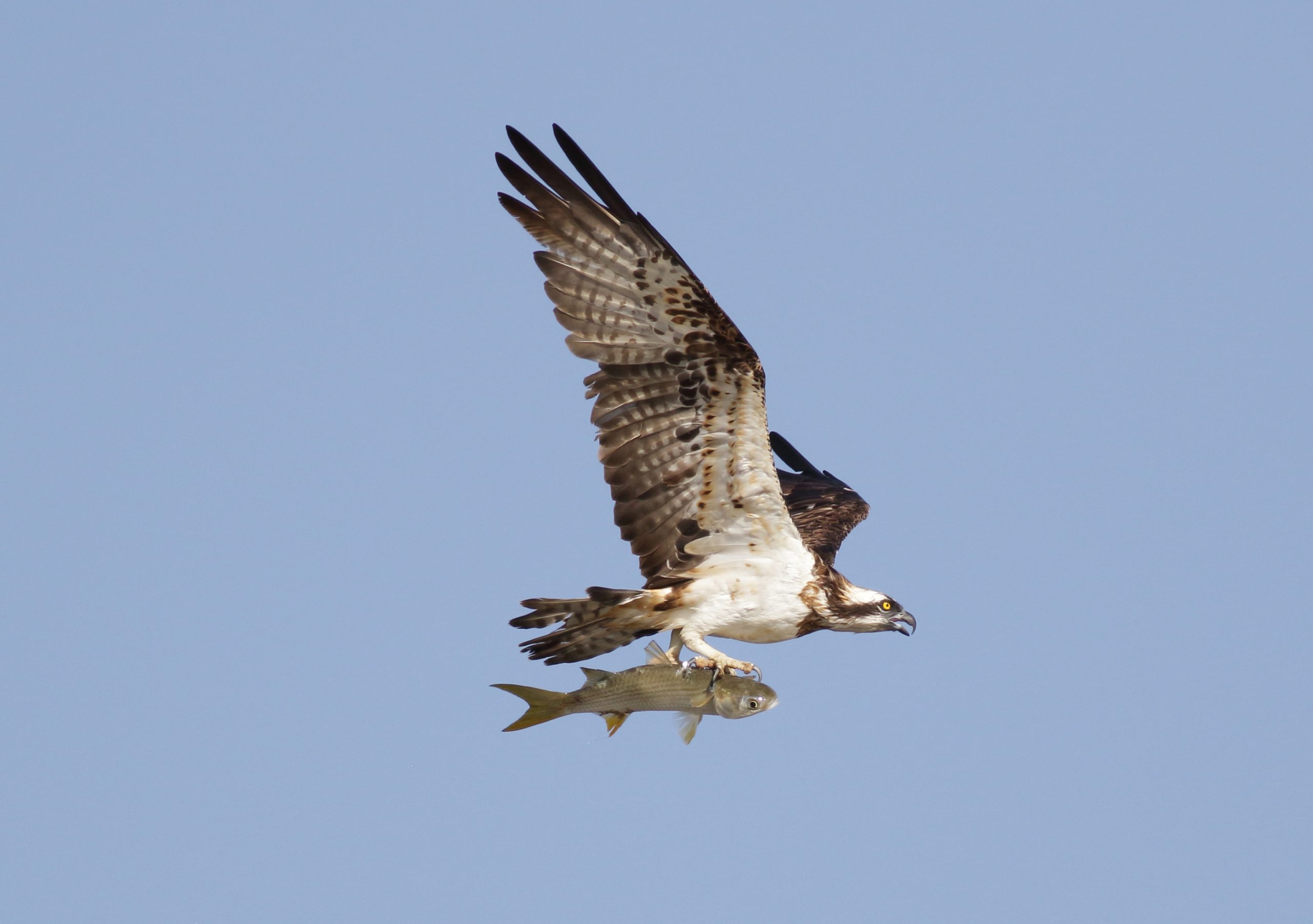 The osprey’s diet consists solely of fish. The outer toe of their talons is reversible, meaning that prey