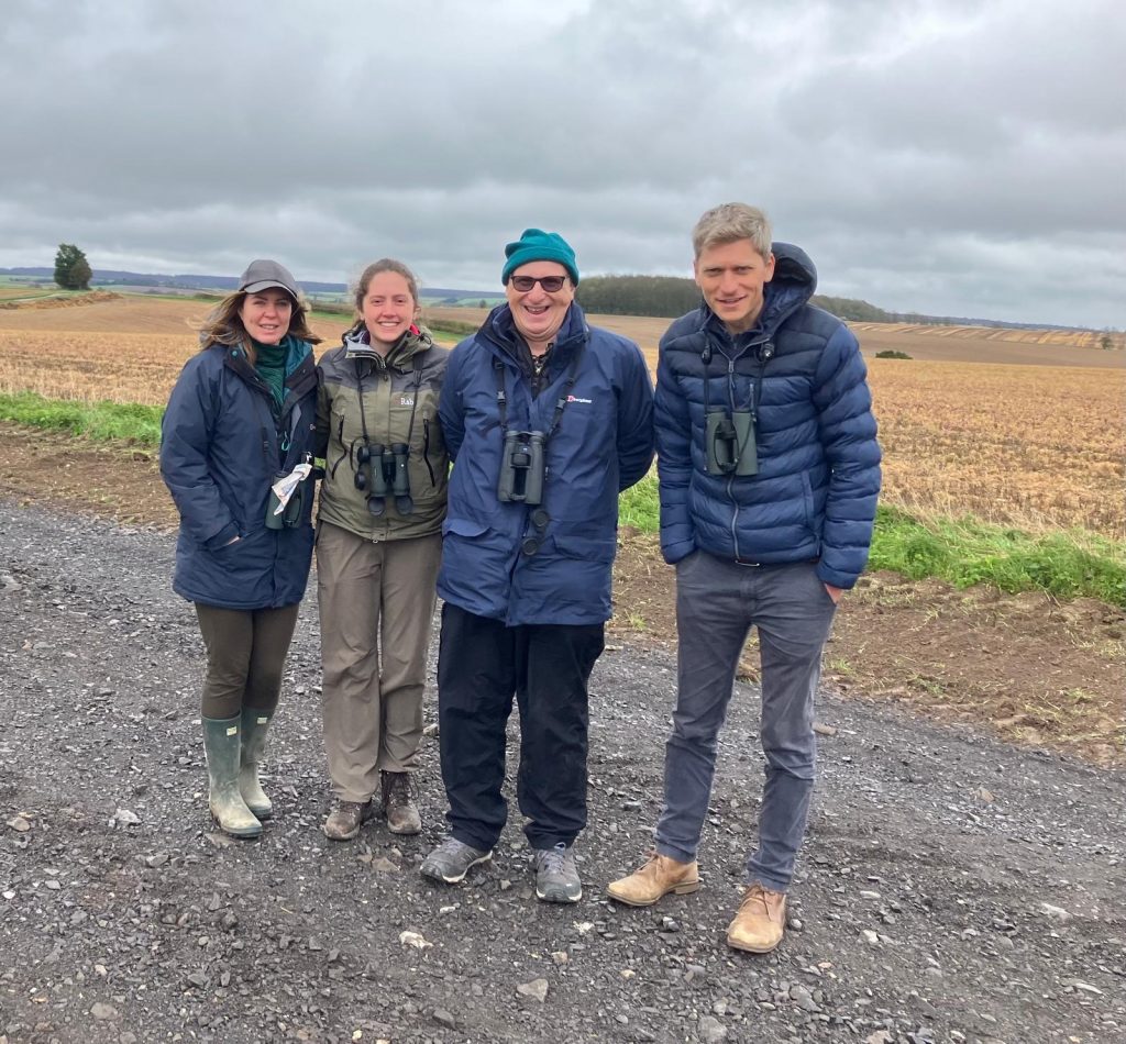 Image: visiting Wiltshire discussing plans for restoring Montagu’s Harrier. Zoe Smith, Naomi Johns, Paul Castle (Wiltshire Ornithological Society) and Dr Tim Mackrill.