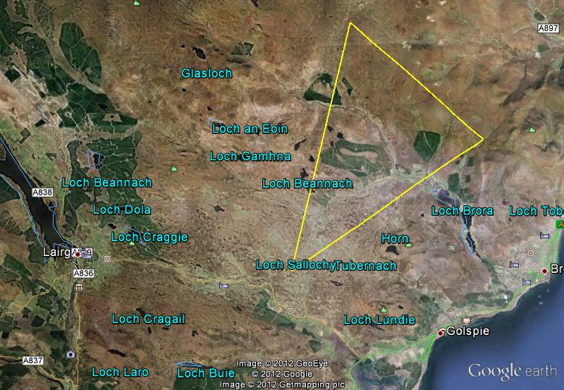107 did a big circuit of Loch Shin on 10th and then north to Morven in Caith ness at 2pm on 11th but straight back south to the Loch Buidhe area north of Bonar Bridge. He ranged around here until 18th and then flew north to Ben Klibreck and then to Strathbrora.