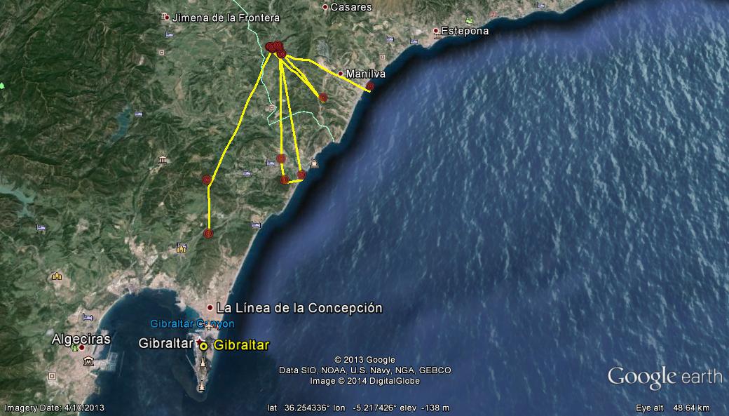 Beatrice has been regualrly ranging down to Palmones Bay from her usual winter site, and used an area of 300 square km. Probably getting ready to fly to France.